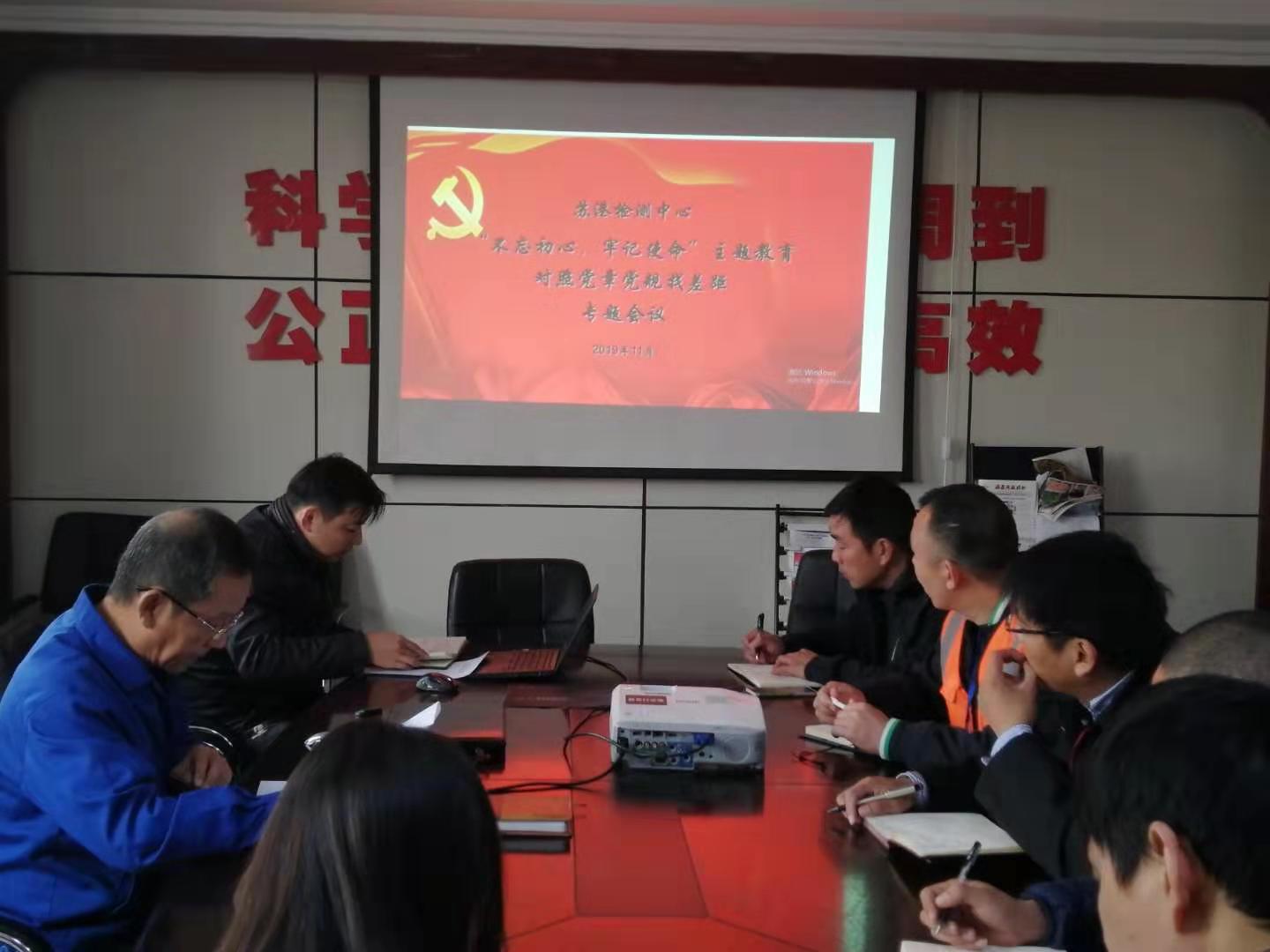 根據(jù)集團(tuán)黨委和公司黨委“不忘初心、牢記使命”主題教育工作部署安排,11月12日上午,蘇港檢測(cè)黨支部召開(kāi)對(duì)照黨章黨規(guī)找差距專題會(huì)議,全體黨員參加會(huì)議,黨支部書(shū)記于俊洋主持會(huì)議。