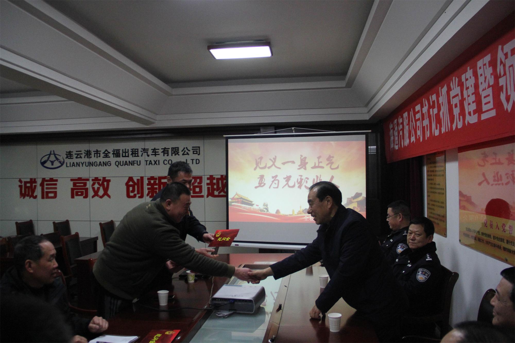 為了進(jìn)一步弘揚(yáng)見義勇為精神,關(guān)愛見義勇為人員,根據(jù)《市政府辦公室關(guān)于進(jìn)一步加強(qiáng)見義勇為人員權(quán)益保護(hù)的實(shí)施意見》,在2020年新春佳節(jié)前夕、1月15日下午,市見義勇為基金會(huì)理事長曹玉和、市公交局主任趙斯斌、市公共交通分局領(lǐng)導(dǎo)等一行六人到全福出租公司看望慰問了“省十大見義勇為好司機(jī)”潘振銀,并為他送上了慰問金。