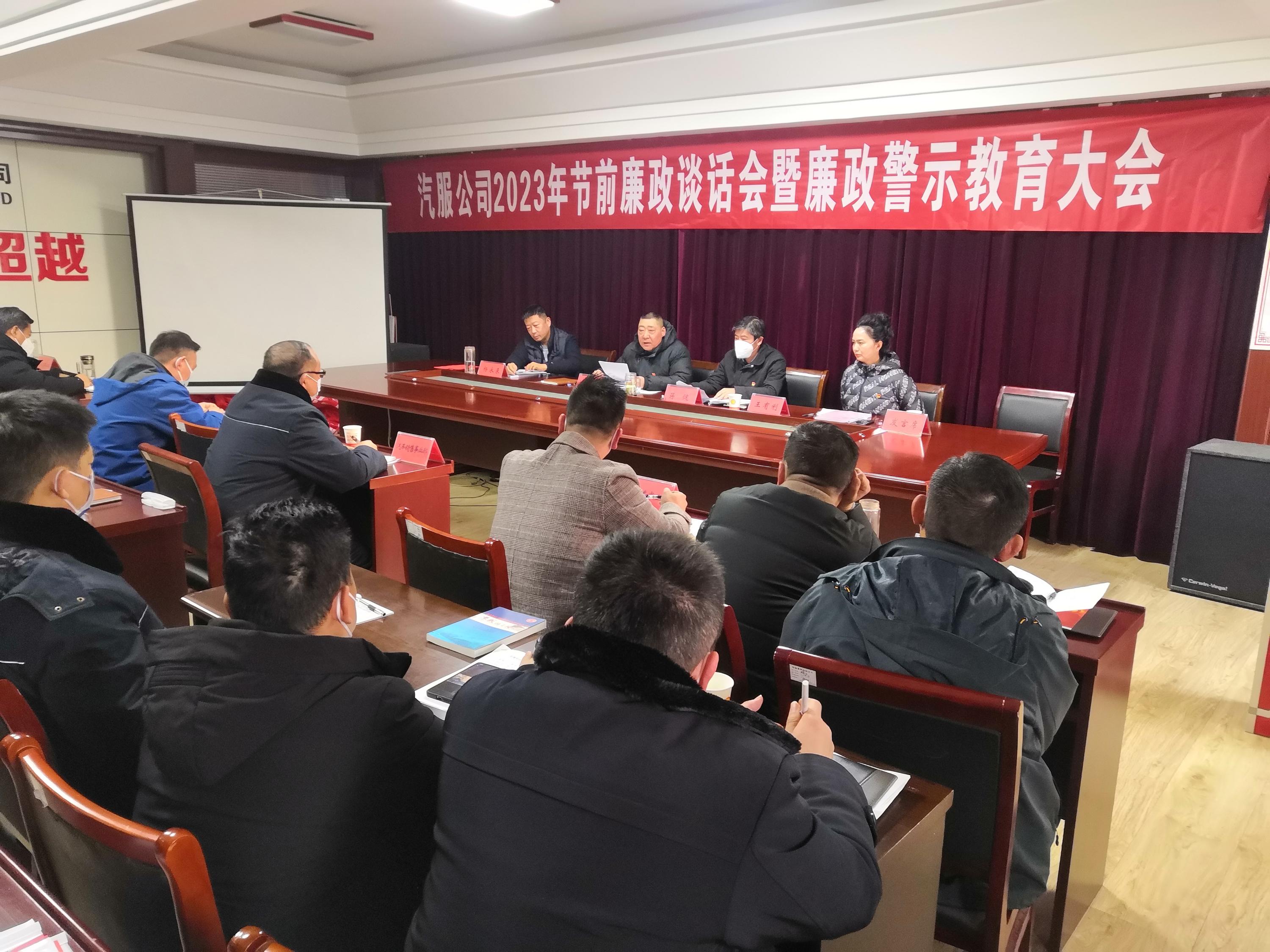 為全面貫徹落實(shí)黨的二十大精神,堅(jiān)定不移深入推進(jìn)全面從嚴(yán)治黨,推動(dòng)黨風(fēng)廉政各項(xiàng)責(zé)任全面壓實(shí),1月17日下午,汽服公司召開(kāi)節(jié)前廉政談話會(huì)暨廉政警示教育大會(huì),公司領(lǐng)導(dǎo)班子成員、中層干部共40余人參加會(huì)議。會(huì)議由汽服公司黨委委員、總經(jīng)理助理王有利主持。