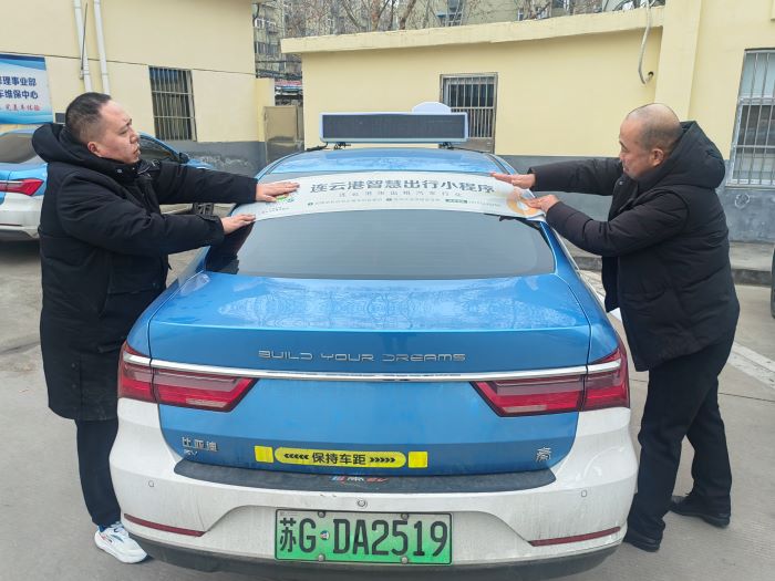 為積極做好巡網(wǎng)一體化宣傳推廣工作,自1月2日開始,出租汽車事業(yè)部陸續(xù)召集駕駛員到事業(yè)部院內(nèi)張貼“連云港智慧出行”小程序后視窗廣告。