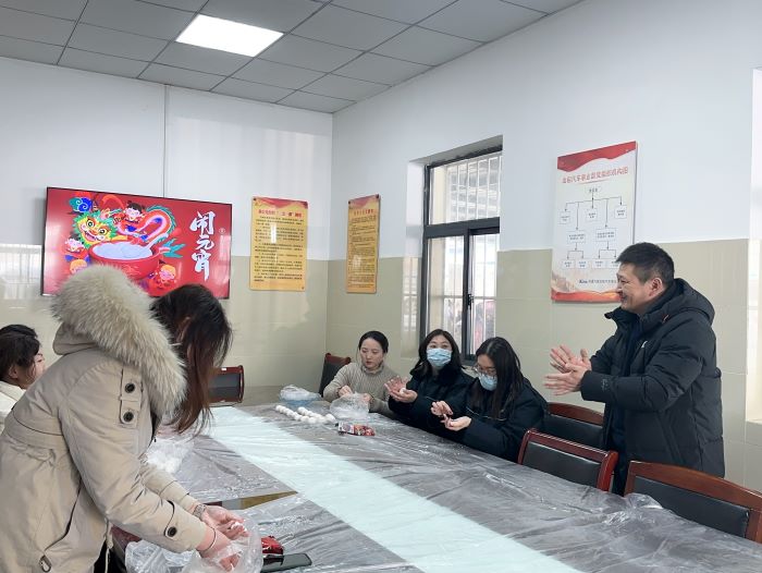 活動現(xiàn)場掛滿了工作人員精心準備的五顏六色的謎面卡片,工會主席吳寒給大家介紹了元宵節(jié)的來歷,讓大家進一步了解元宵節(jié)傳統(tǒng)習(xí)俗。隨后,大家一起開始動手制作湯圓,取一小塊面團放在手心,把面團壓扁,再輕輕放上黑芝麻餡,然后把面團向中間捏緊,再放手心搓一搓,一個湯圓就完成了。不一會兒,一個個白白胖胖的元宵就擺滿了桌面。鍋中開水沸騰,元宵在水中翻滾,大家其樂融融地一起品嘗元宵。活動現(xiàn)場氛圍濃烈,匯聚著歡聲笑語。