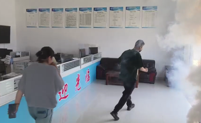 演練模擬了汽車租賃事業(yè)部業(yè)務(wù)大廳內(nèi)發(fā)生火災(zāi),火勢迅速蔓延,現(xiàn)場濃煙滾滾的情形,營造了真實火災(zāi)的緊張氣氛,所有工作人員在安全員的引導(dǎo)下進行了緊急疏散逃生。事業(yè)部全體員工迅速反應(yīng),彎腰低姿、捂住口鼻,有序地按照疏散路線從安全出口撤離至安全地帶,整個過程緊張有序,員工反應(yīng)迅速,達到了演練預(yù)期效果,為員工快速逃離消防安全事故現(xiàn)場提供了寶貴的經(jīng)驗,提高了租賃事業(yè)部對突發(fā)事故的應(yīng)急處理能力。