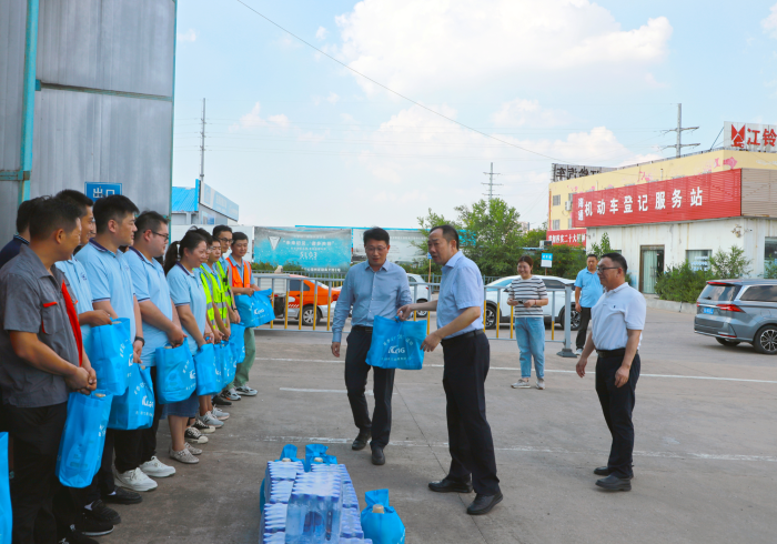 活動現(xiàn)場,集團(tuán)領(lǐng)導(dǎo)們深入一線,與職工們親切交流,了解他們的工作和生活情況。領(lǐng)導(dǎo)們對職工在高溫下的堅(jiān)守和努力表示了高度的贊揚(yáng)和感謝。隨后,領(lǐng)導(dǎo)們將精心準(zhǔn)備的清涼物資逐一送到職工的手中。這些清涼物資不僅為職工們帶來了身體上的舒適,更讓他們感受到了集團(tuán)的關(guān)懷和溫暖。
