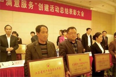 4月19日下午,2012年度江蘇省"用戶滿意服務(wù)"創(chuàng)建活動總結(jié)表彰會在南京國際會議大酒店隆重召開,海通汽服全福出租車公司作為全省28家服務(wù)單位的代表在會上領(lǐng)取了江蘇省"用戶滿意服務(wù)先進(jìn)單位"獎牌和證書。