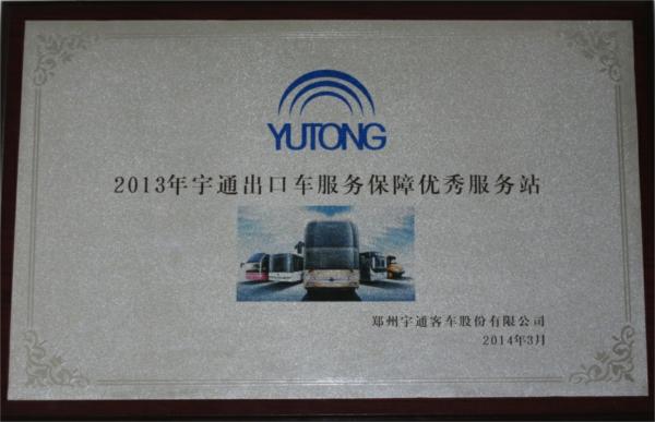 汽服大浦保養(yǎng)總廠被評(píng)為2013年宇通出口車服務(wù)保障優(yōu)秀服務(wù)站