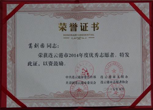 5月14日,借連云港市志愿者協(xié)會(huì)第三次會(huì)員代表大會(huì)召開(kāi)之際,連云港市委宣傳部、市文明辦、團(tuán)市委、市志愿者協(xié)會(huì)對(duì)2014年度優(yōu)秀志愿者、優(yōu)秀志愿服務(wù)組織進(jìn)行表彰,連汽出租公司“雷鋒的士”車(chē)隊(duì)榮獲“2014年度優(yōu)秀志愿服務(wù)組織”榮譽(yù)稱(chēng)號(hào),葛劉園榮獲“2014年度優(yōu)秀志愿者”榮譽(yù)稱(chēng)號(hào)。