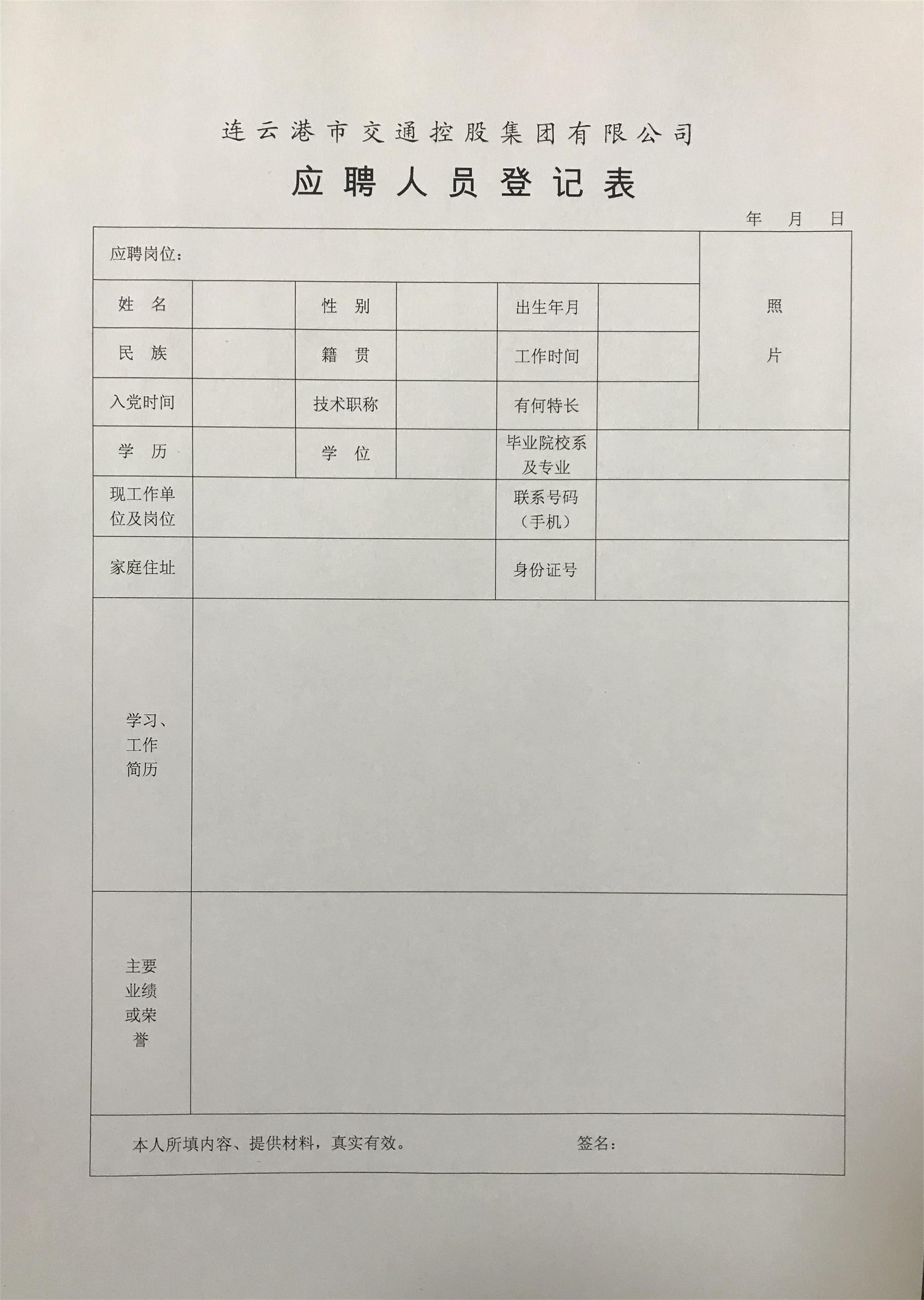 附:《連云港市交通控股集團應聘人員登記表》